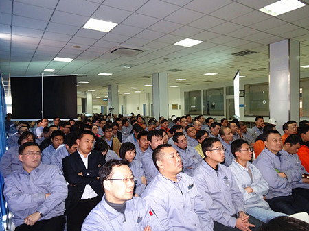 接下來,王總對公司各系統(tǒng)的工作做了詳細(xì)的分析:營業(yè)方面,訂貨結(jié)構(gòu)有所改善。生產(chǎn)方面:發(fā)貨數(shù)量創(chuàng)歷史新高;生產(chǎn)效率提高、費(fèi)用控制也是生產(chǎn)系統(tǒng)的一大亮點(diǎn)。在采購工作中,各個(gè)部門的溝通和配合有很大的提高,降低費(fèi)用成效顯著。焊接工場成立一年半來,成長迅速,超出公司預(yù)期;在焊接噸位、員工技能提高、工藝改善等方面有了很大的發(fā)展。研發(fā)方面:導(dǎo)入PDM管理軟件,出圖質(zhì)量提高,出圖及時(shí)率達(dá)到98%以上,圖紙更改率降低。通過與富津工廠及總部的溝通與支持,各項(xiàng)開發(fā)課題進(jìn)展順利??梢宰院赖恼f:目前我公司中開泵性能的競爭力已經(jīng)在國內(nèi)不輸任何一家競爭對手,為下一步產(chǎn)品拓展打下了基礎(chǔ)。管理系統(tǒng)方面:PDM管理軟件的應(yīng)用,ERP系統(tǒng)升級,公司會議系統(tǒng)的開發(fā)及各種表單的開發(fā)、電腦的更換,為部門效率的提高打下了基礎(chǔ)。辦公樓的改造、5S管理工作的強(qiáng)化等等使公司辦公面貌煥然一新。通過各方面工作的磨練及內(nèi)外培訓(xùn)工作的加強(qiáng),員工的技能、思維方式、行為方式、解決問題的能力等有了很大程度的提高。