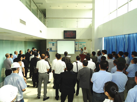 這次生產(chǎn)革新大會(huì)的目的是加速推進(jìn)荏原集團(tuán)內(nèi)部各工廠的生產(chǎn)革新活動(dòng)的開展,目標(biāo)是生產(chǎn)周期減半、庫存減半、最大限度地提高生產(chǎn)效率,降低成本,增強(qiáng)企業(yè)競爭力。通過生產(chǎn)革新活動(dòng),達(dá)到從現(xiàn)場改善提升到管理系統(tǒng)改善、人的改善的目標(biāo),使“產(chǎn)品制作”流程優(yōu)化。在這次大會(huì)上,公司總經(jīng)理王正軍向與會(huì)代表介紹了EMZ的經(jīng)營發(fā)展?fàn)顩r,并帶領(lǐng)與會(huì)人員參觀工廠,詳細(xì)介紹了生產(chǎn)革新的進(jìn)展情況。