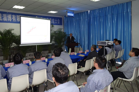 王正軍總經(jīng)理首先對2014年度工作做了總結(jié):2014年是一個豐收年,各項指標創(chuàng)公司歷史新高。訂貨同比增長2%, 營業(yè)收入同比增長9.2%,應(yīng)收賬款大幅下降。更可喜的是臨界利潤率增長3.8個百分點。公司連續(xù)二年實現(xiàn)盈利,完成了荏原制作所的總體目標 。