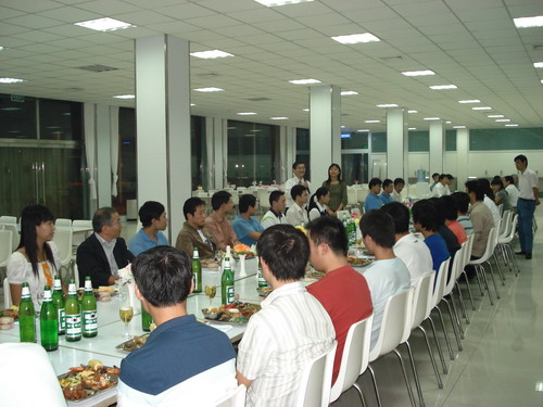 晚宴在輕快的音樂聲中舉行,總經(jīng)理孫龍平因公務(wù)無法前來,專門打電話表達(dá)了對員工的節(jié)日問候。公司董事長井上先生、常務(wù)副總鈴木先生先后致辭,表達(dá)了對員工節(jié)日的祝賀,同時談到了八月十五這一天,在日本也有全家人賞月的傳統(tǒng),故鄉(xiāng)的明月是所有游子魂牽夢繞的情。自助式晚宴進行得自由而輕松,員工之間頻頻舉杯,共敘友誼,并無多愁善感;人力資源部姜部長帶頭向員工一一祝酒,對員工的鼓勵溢于言表,整個餐廳觥籌交錯,其樂融融。