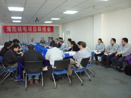 聯(lián)絡(luò)會(huì)主要是對(duì)我公司中標(biāo)海陽(yáng)核電項(xiàng)目一期工程2*1000MW項(xiàng)目中的開(kāi)閉試泵和循環(huán)水泵的有關(guān)文件進(jìn)行確認(rèn),以及進(jìn)度計(jì)劃等后續(xù)開(kāi)始的建造工作進(jìn)行商議。