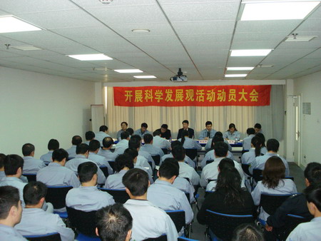 動(dòng)員大會(huì)由總經(jīng)理孫龍平同志主持。會(huì)上,首先宣讀了《關(guān)于成立公司學(xué)習(xí)實(shí)踐科學(xué)發(fā)展觀領(lǐng)導(dǎo)小組的通知》,荏原博泵黨總支副書記姜作棟同志宣讀了公司《深入學(xué)習(xí)實(shí)踐科學(xué)發(fā)展觀活動(dòng)的實(shí)施方案》,明確了各階段的任務(wù)要求和具體責(zé)任人,并公布了公司信箱、意見箱,鼓勵(lì)廣大黨員、群眾對(duì)公司開展好學(xué)習(xí)實(shí)踐科學(xué)發(fā)展觀活動(dòng)獻(xiàn)計(jì)獻(xiàn)策。