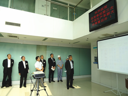 2015年5月26日,荏原集團(tuán)第三次中國生產(chǎn)革新大會(huì)在我公司召開。這次大會(huì),由荏原集團(tuán)在中國包括臺(tái)灣的八家海外工廠組成,各公司的主要負(fù)責(zé)人及技術(shù)人員共70余人參加了會(huì)議。荏原集團(tuán)風(fēng)水利公司領(lǐng)導(dǎo)大井專務(wù)取締役、小瀉常務(wù)取締役、野路常務(wù)取締役、寺垣常務(wù)及我公司董事長井上貴雄到會(huì)并講話。