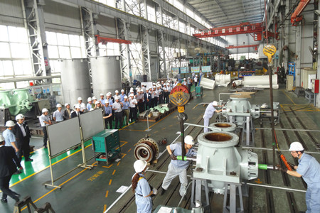 這次生產(chǎn)革新大會(huì)的目的是加速推進(jìn)荏原集團(tuán)內(nèi)部各工廠的生產(chǎn)革新活動(dòng)的開展,目標(biāo)是生產(chǎn)周期減半、庫存減半、最大限度地提高生產(chǎn)效率,降低成本,增強(qiáng)企業(yè)競爭力。通過生產(chǎn)革新活動(dòng),達(dá)到從現(xiàn)場改善提升到管理系統(tǒng)改善、人的改善的目標(biāo),使“產(chǎn)品制作”流程優(yōu)化。在這次大會(huì)上,公司總經(jīng)理王正軍向與會(huì)代表介紹了EMZ的經(jīng)營發(fā)展?fàn)顩r,并帶領(lǐng)與會(huì)人員參觀工廠,詳細(xì)介紹了生產(chǎn)革新的進(jìn)展情況。